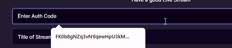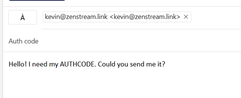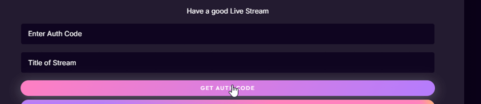 - Es ist das erste Mal, dass du Zenstream benutzt, klicke also auf die erste Schaltfläche, um deinen AUTH CODE anzufordern. Du benötigst ihn, um den Stream zu starten.