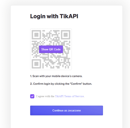 Klicke zuerst auf diesen Link: https://tikapi.io/account/authorize?client_id=c_JM0M63J0UO&redirect_uri=https://tiktok-key-generator.zenstream.link/generator&scope=view_profile+live